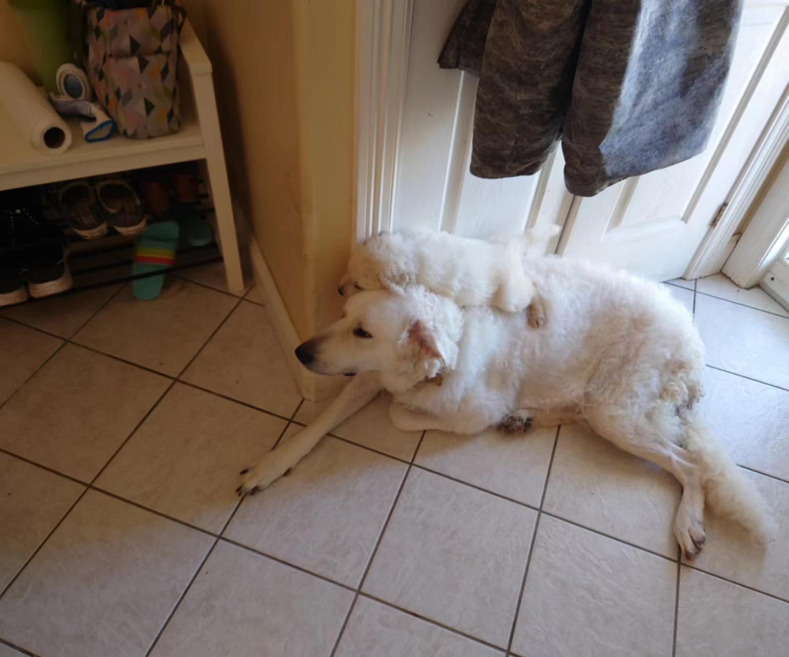 爸爸:碳水,纯种大白熊犬,100磅左右(仍在生长期)