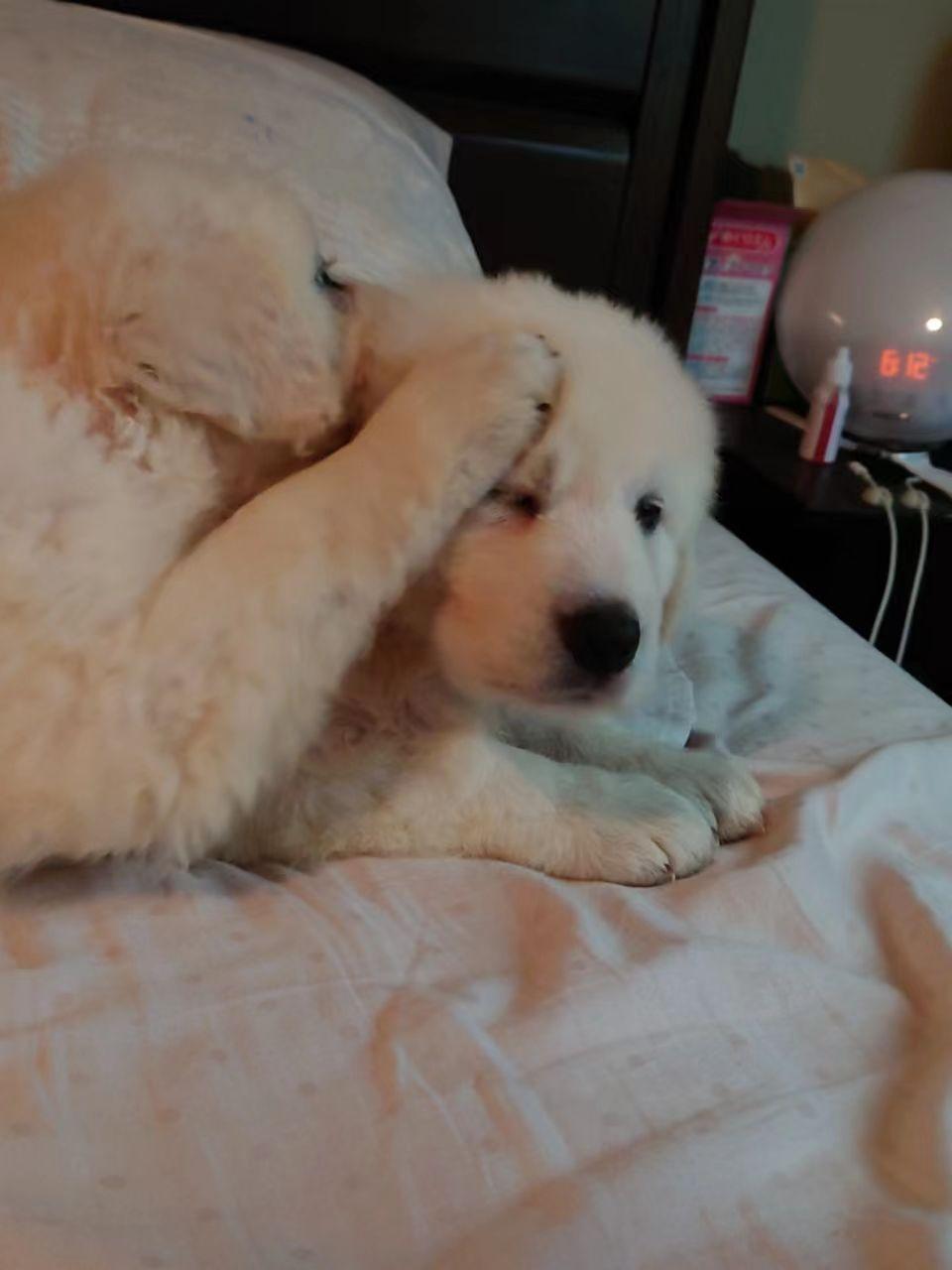 妈妈:蛋白,纯种库瓦兹犬,90磅左右。