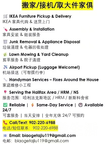 生活服务 提供Halifax便民服务:搬家/接机/取大件家俱/家庭维修小工程/垃圾清理&电器回收处理...
