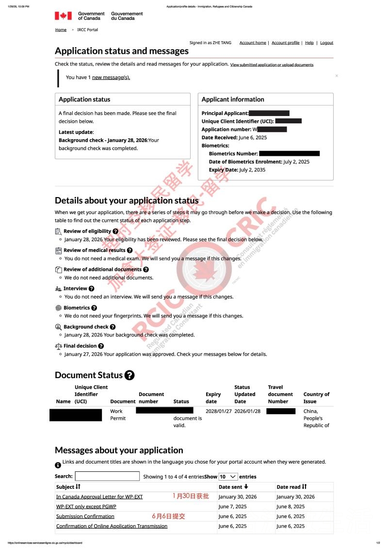 恭喜我们超时空移民留学的夫妻客户成功获批桥梁工签!客户夫妻已通过联邦Express Entry递交永久居留申请。桥梁工签属于开放工签,不限定雇主,工签获批后,夫妻双方可继续工作合法居留,同时等待PR申请结果。